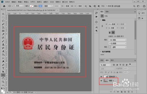 按Ctrl+Enter键建立选区,选中身份证图层,按Ctrl+J拷贝图层。