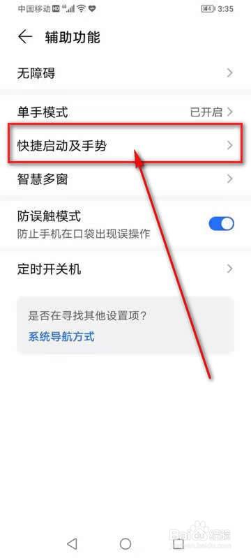 点击“快捷启动及手势”。
