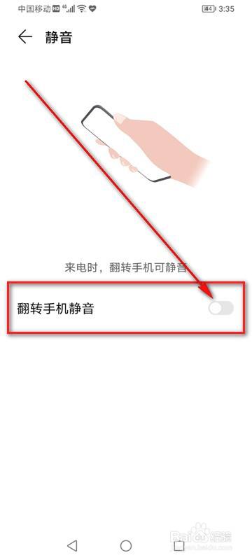 将“翻转手机静音”旁的小滑块点亮即可启用。