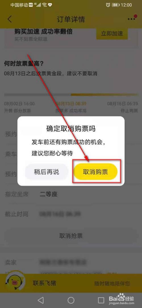 点击“打消购票”。