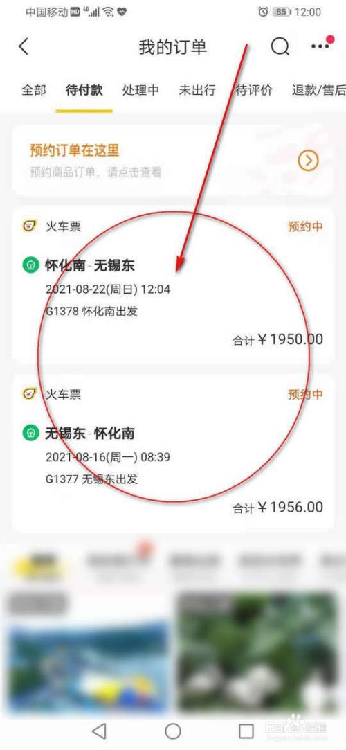 点击预约中的抢火车票订单记实。
