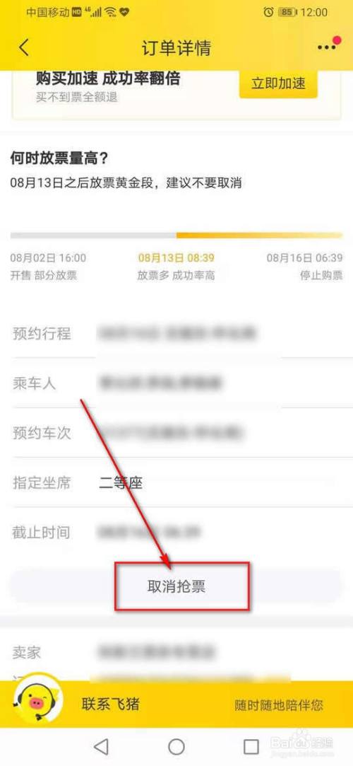 点击“打消抢票”。