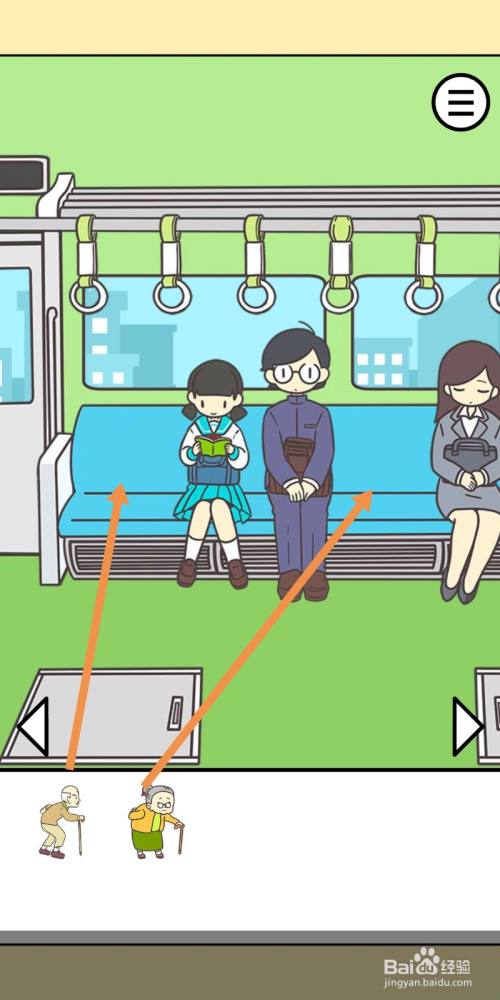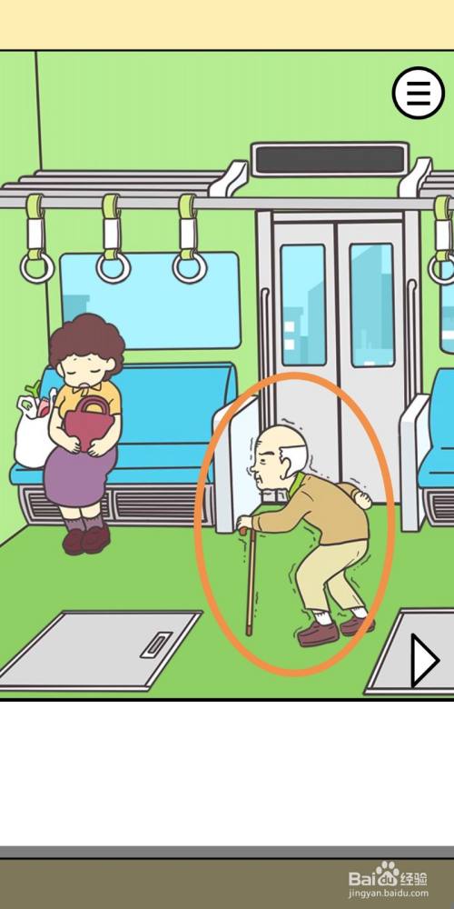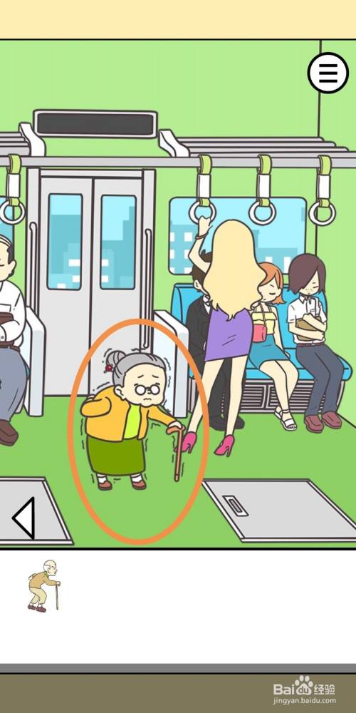 老爷爷、老奶奶都坐下后,点击进入第一节车厢。