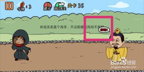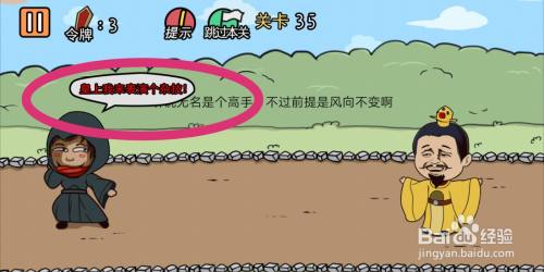 进入游戏第35关,首先细心不雅察两人的对话,以及画面提醒。