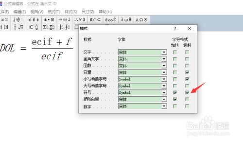 打开“样式”对话框,在该对话框中勾选“符号”后“加粗”和“倾斜”复