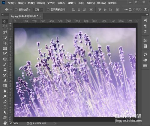 我们用ps打开一张紫色的花朵图片。