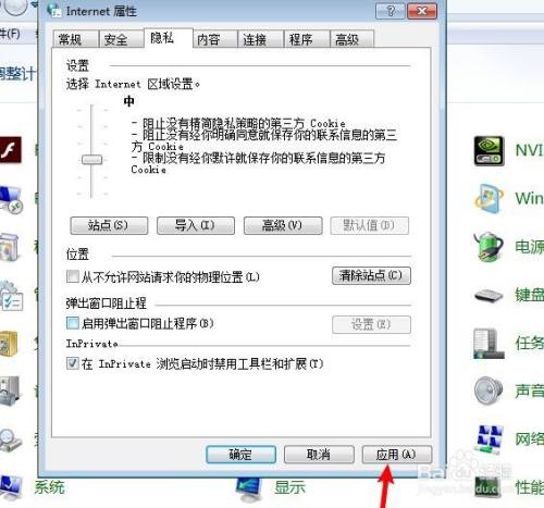 点击应用,那么就将ie内置阻止弹窗程序给封闭了。