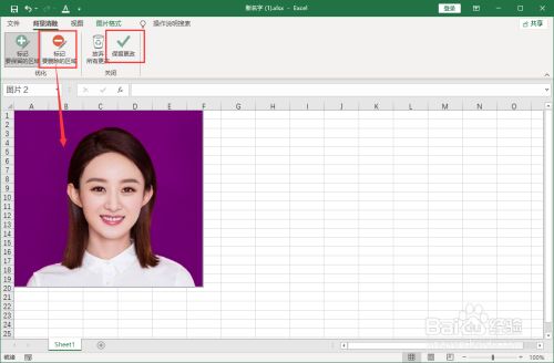 激活要标识表记标帜要删除的区域,选中证件照底色,点击“保留更改”。
