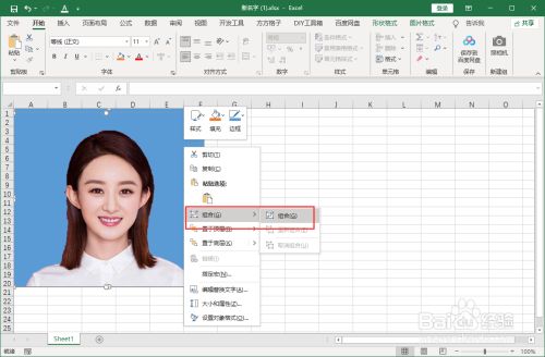 按住Ctrl键,别离点击矩形和人物图像选中它们,鼠标右键“组合”-“组合”把人物图像和矩形组合到一路,这样证件照底色就被改换了。