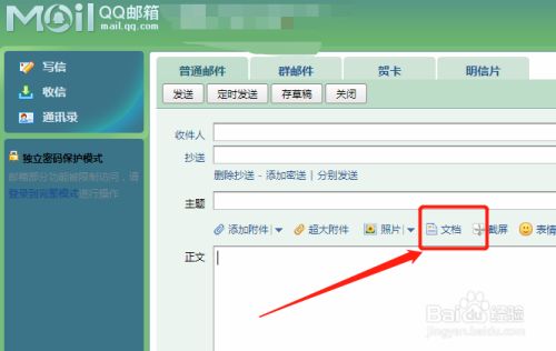 进入到写邮件页面,点击文档。