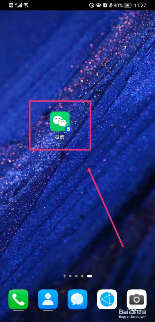 首先,找到手机中的“微信”,点击打开;