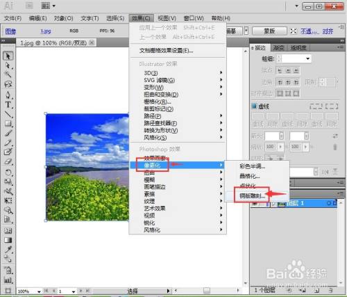 我们就在AI中给图片添加上了粗网点铜版雕镂结果。