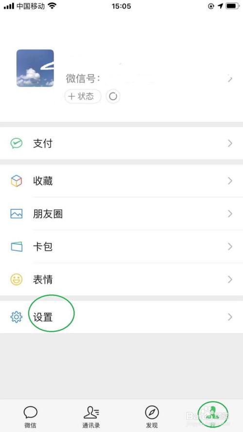 在微信界面中,选择右下角【我】,在列表中选择【设置】,如图。