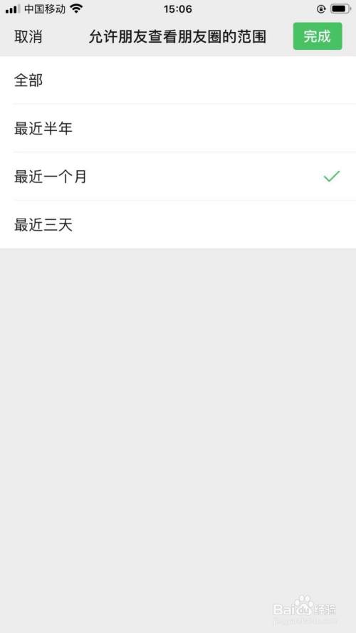 设置朋友圈只显示比来一个月的动态就可以了,如图。