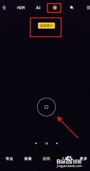2、进入拍摄页面后,点击上方动态照片图标
