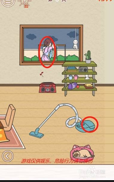 工具/原料联想小新13window10方式/步骤1首先点击右下角的箭头按钮切换到右边的画面2然后拿到架子上面的气候娃娃3接着把气候娃娃绑在窗户外面的绳索上4然后拉一下气候娃娃以改变气候5然后趁妈妈在外面收衣服的时辰打开吸尘器的后盖6最后拿到吸尘器里面的私房钱即可END