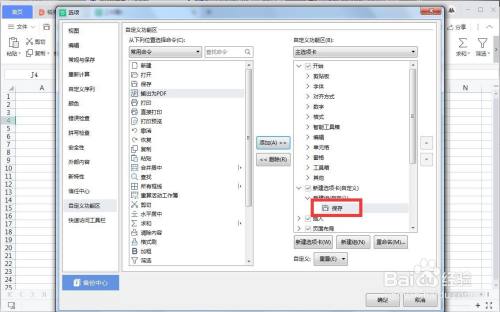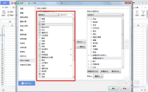 在选项面板中点“自界说功能区”选项卡。