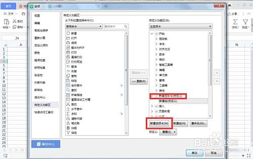 点“确定”按钮。就可以在功能区找到新建的选项卡,可以看到里面添加的功能。