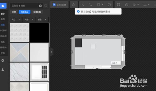 左上方打消扣板自由铺,再次选择扣板商品进行放置为满铺铺贴。