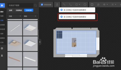 选择立体扣板进行放置,可对立体扣板进行扭转拼当作图案。