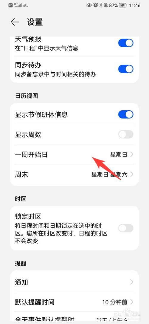 选择“礼拜一”之后,即可“当作功设置每周第一天为周一”。