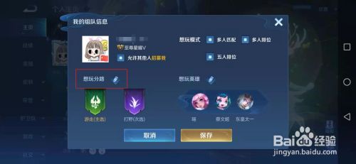 工具/原料HUAWEINova 8 proEMUI 11.0.0.134王者荣耀v3.63.1.15方式/步骤1点击打开王者荣耀app进入游戏。2进入游戏本家儿页面后点击左上方的小我头像。3点击右上方的设置。4在右侧弹出的页面点击组队信息。5点击想玩分路后方的图标。6在这里点击选择本身的本家儿选分路和次选分路,选择好之后点击下方确定即可。END
