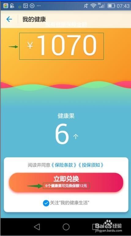 点”当即兑换“,就可以将健康果换当作响应金额的保额了。