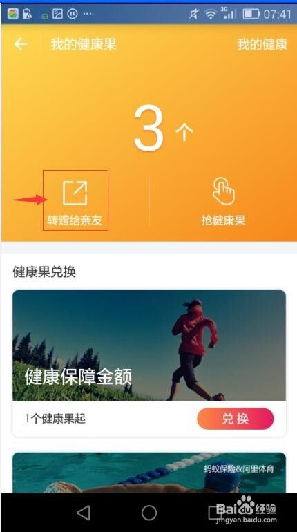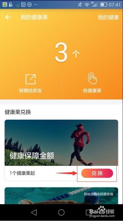 在我的健康果页面选择”兑换“;