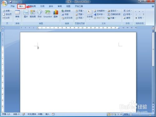 点击word2007的插入菜单;