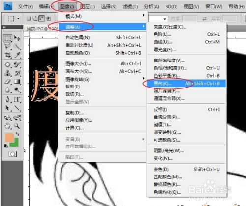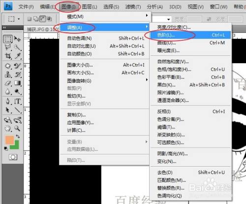 选择“图像”,点击“调整”,点击“口角”,将水印酿成口角色。