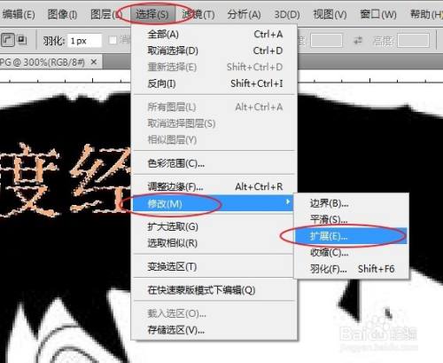 点击“选择”,点击“点窜”,选择“扩展”,扩展2个像素。