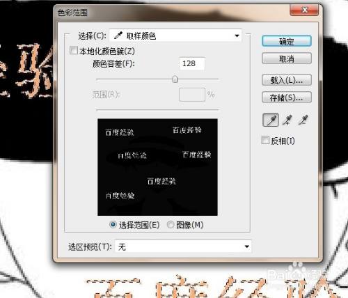 随后弹出“色彩规模”窗口,鼠标点击水印,恰当调整颜色容差,从而将彩色水印选中,点击“确定”。
