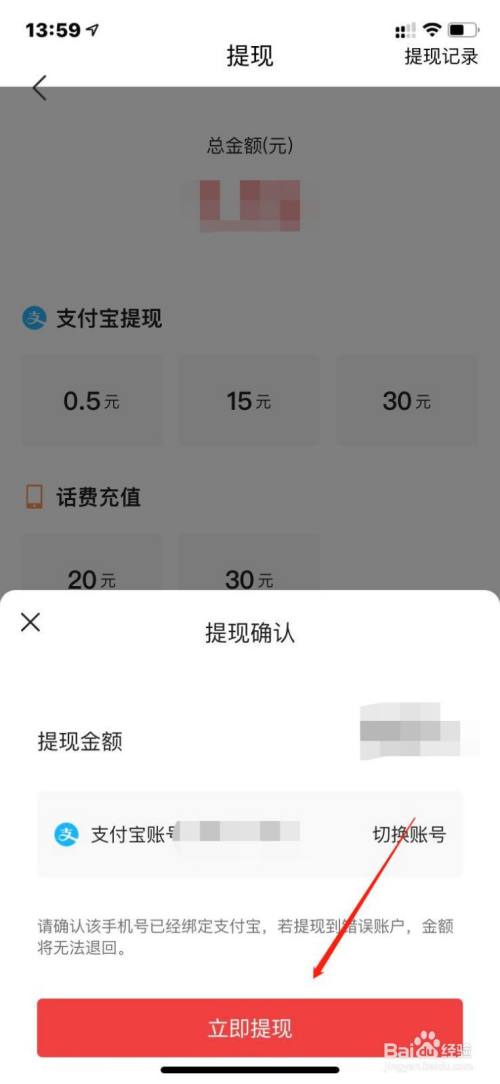 点击【当即提现】