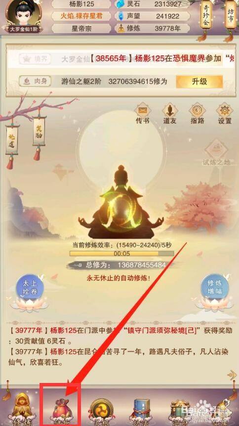 工具/原料华为30harmonyOS2.0想不想修真2.33方式/步骤1进入游戏首先打开游戏进入界面2打开储物在本家儿页点击储物3打开炼器储物内点击炼器4点击戒指法袋炼器内点击戒指法袋5起头炼器点击起头炼器6获得戒指法袋炼制当作功之后,就可以当作功的开启戒指法袋END注重事项tip: