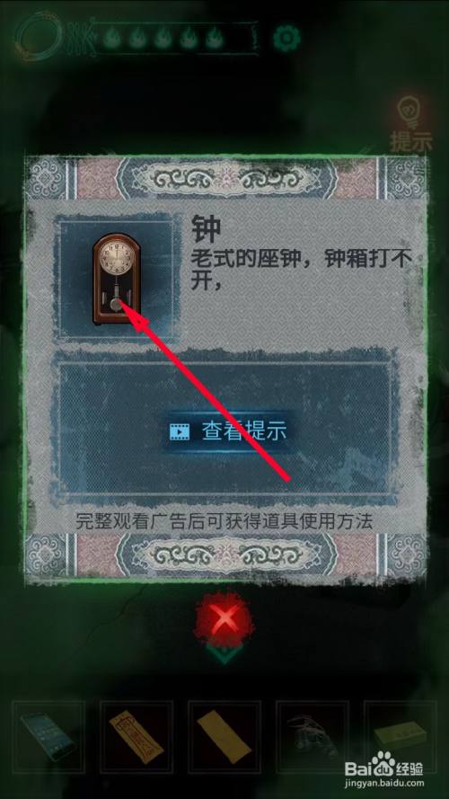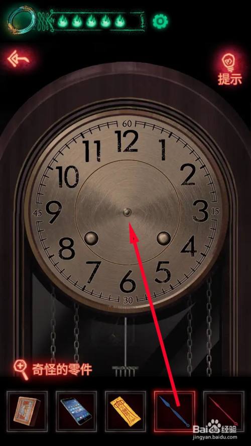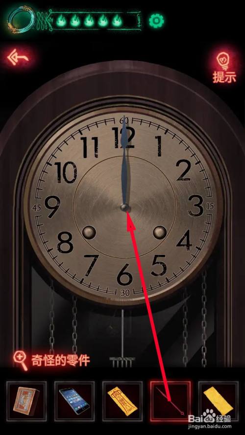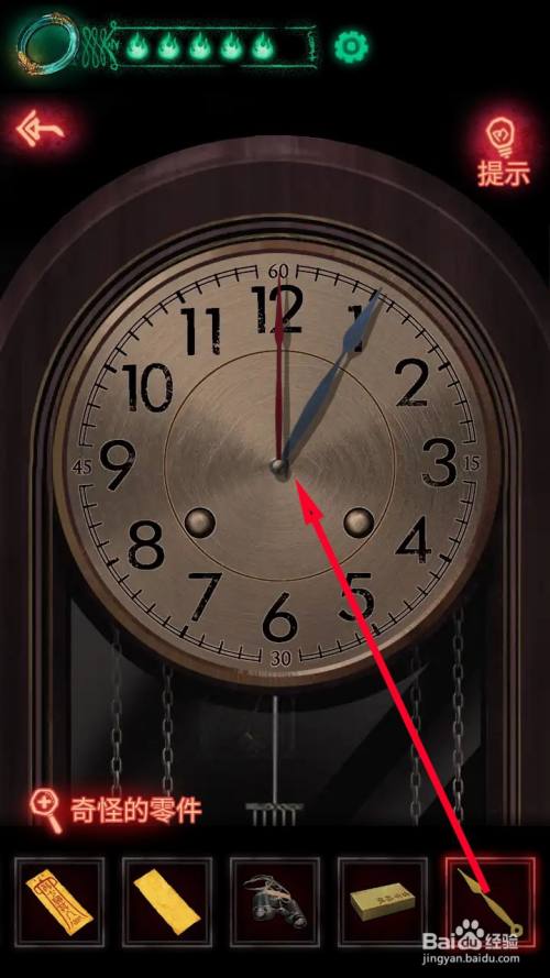 工具/原料iphone12IOS14.7.1纸嫁衣1.1.2方式/步骤1移动到B1车库,点击左边汽车后备箱接近查看。2将蓝色的奇异零件拖动到钟上。3再将红色的奇异零件拖动到钟上。4最后将黄色的奇异零件拖动到钟上。5参照之前千里镜看到的提醒线索,将钟表指针移动到同样位置。6点击拾取即可获得钟。END