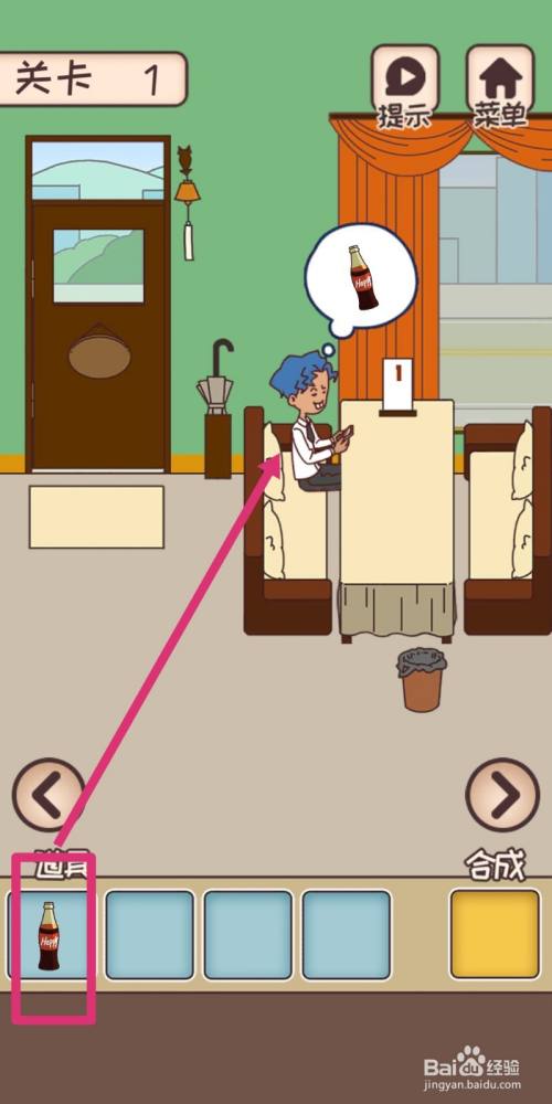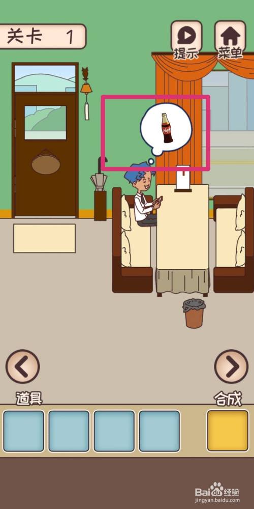点击切换按钮,进入左侧场景,点击获得吧台上的【可乐】。