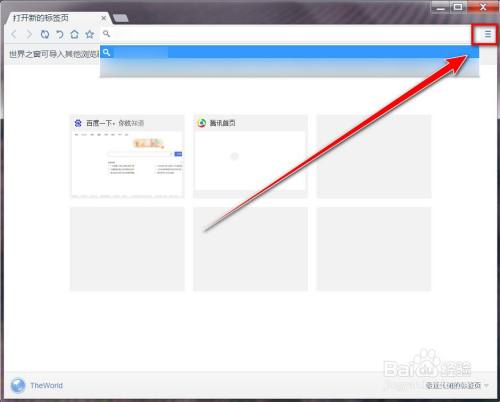 活着界之窗浏览器中,点击右上角的“三横”图标。
