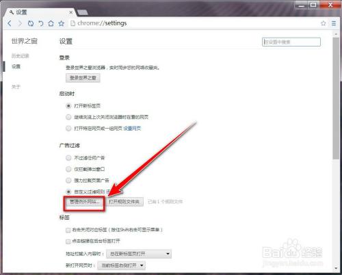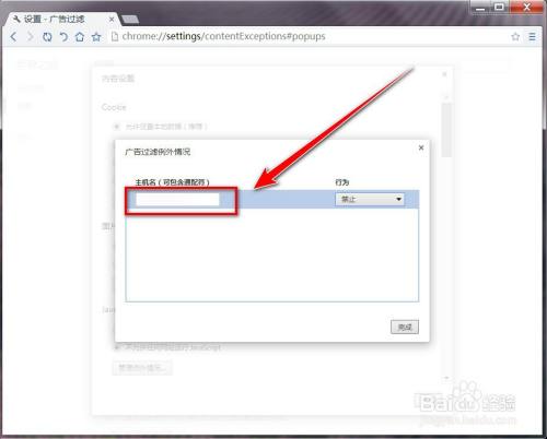 在“本家儿机名”下方的输入框中,输入需解除告白过滤站点的域名。