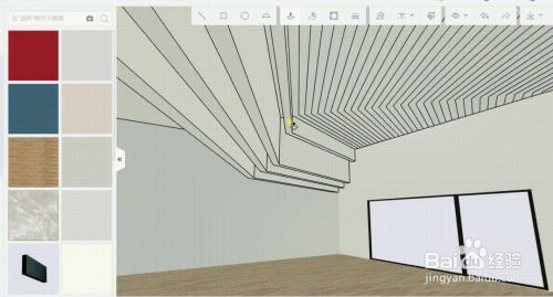 剖面画好后,按照房间长度,拉伸到另一面墙上,完当作绘制,可以在衬着预览查看衬着结果。