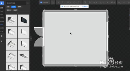 首先打开户型图,鼠标左键点击顶面,进入全屋硬装“吊顶设计”东西。