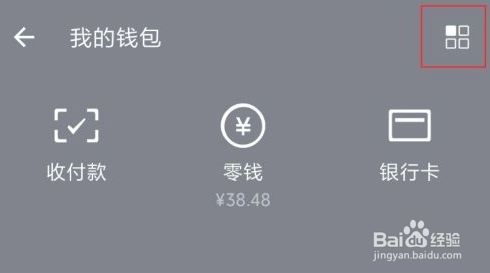 在【我的钱包】中点击右上角的【菜单】图标,进入到【支付中间】办理页面中。