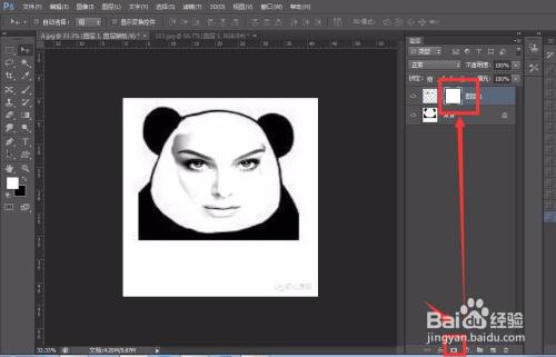 下面,我们点击图层面板的建立快速蒙版按钮,用橡皮擦东西擦去多余不需要的人物面部区域。