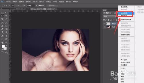 在复制的图层上右击选择【复制图层】,将人脸复制到脸色包模板上。