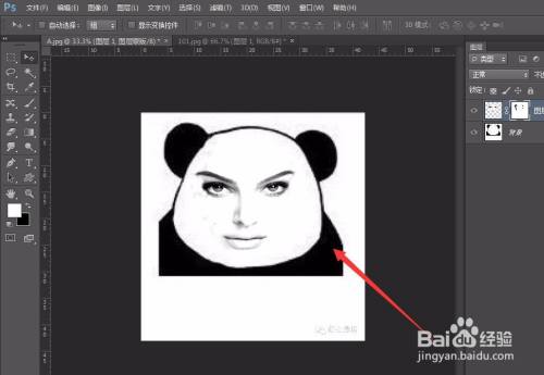如下图,我们调整人脸的大小,使之贴合脸色包模板,点击菜单栏的【图像】——【调整】——【去色】。