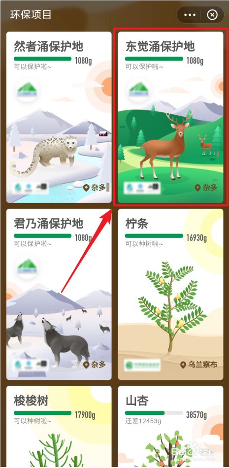 进入环保项目界面后,选摘要庇护的庇护地(如:东觉涌庇护地)。