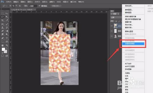 下面,我们在该图片上右击,选择【建立剪贴蒙版】,如下图所示。