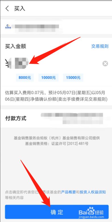 生意法则费率我们都领会清晰了,就可以输入买入金额,这里最低10块钱起买,点击付条目体例