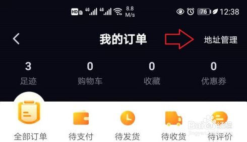 4、点击右上方的【地址办理】选项,继续下一步的操作。