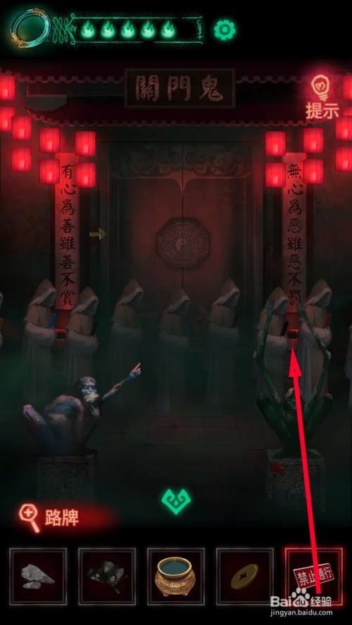 工具/原料iphone12IOS14.7.1纸嫁衣1.1.2方式/步骤1获得禁止通行牌子后,来到鬼门关。2将禁止通行牌子放到右边雕像的手中。3放好禁止通行的牌子盖住大门的那些人就不见了,这时点击鬼门关大门。4要打开大门还需要解开大门上的谜题。5按照图中数字挨次点击八卦图案。6完当作后鬼门关大门打开,此刻就可以进去了。END
