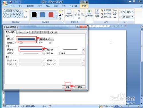 将填充色和线条色都设置为蓝色,然后按确定;